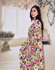 Flowerly Print With Rhinestones Embellishments.