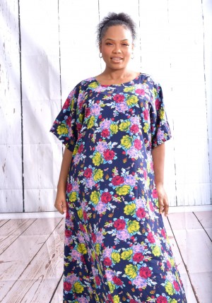 - A – Line Style In Flowerly Print With Rhinestones Embellishments.