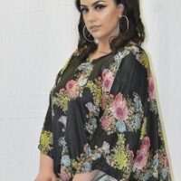 - Flowerly Print With Rhinestones Embellishments.