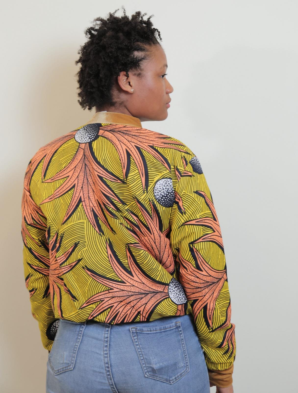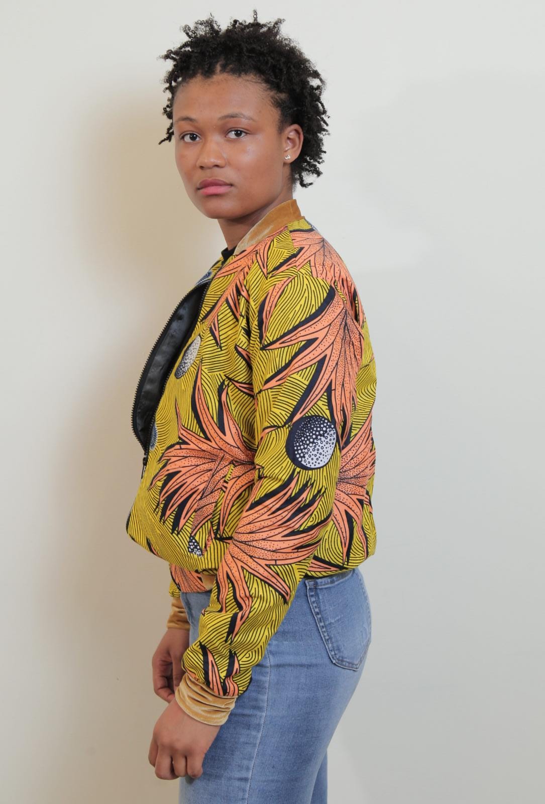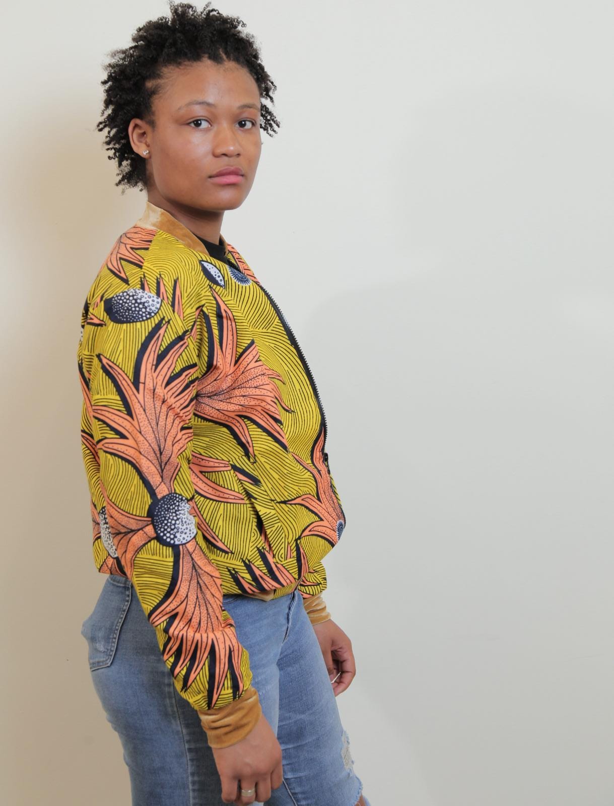 Our beautiful and colorful prints on bomber jackets are very trendy. They are perfect for those chilly summer nights or those cold train rides. Flobinna House of Fashion bomber jackets combines the colors and geometrics of 100% cotton materials with a fashionable cut making the fabric the star because Every Flobinna House of Fashion Bomber Jacket comes with longneck, twin side pockets, front zip, and elastic timings.