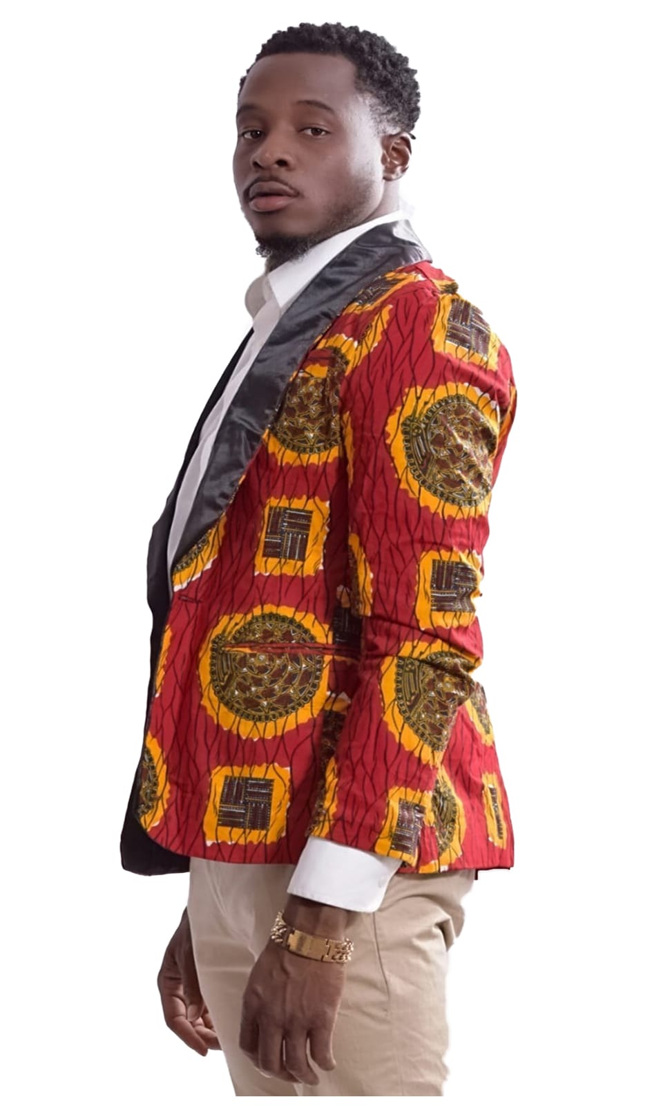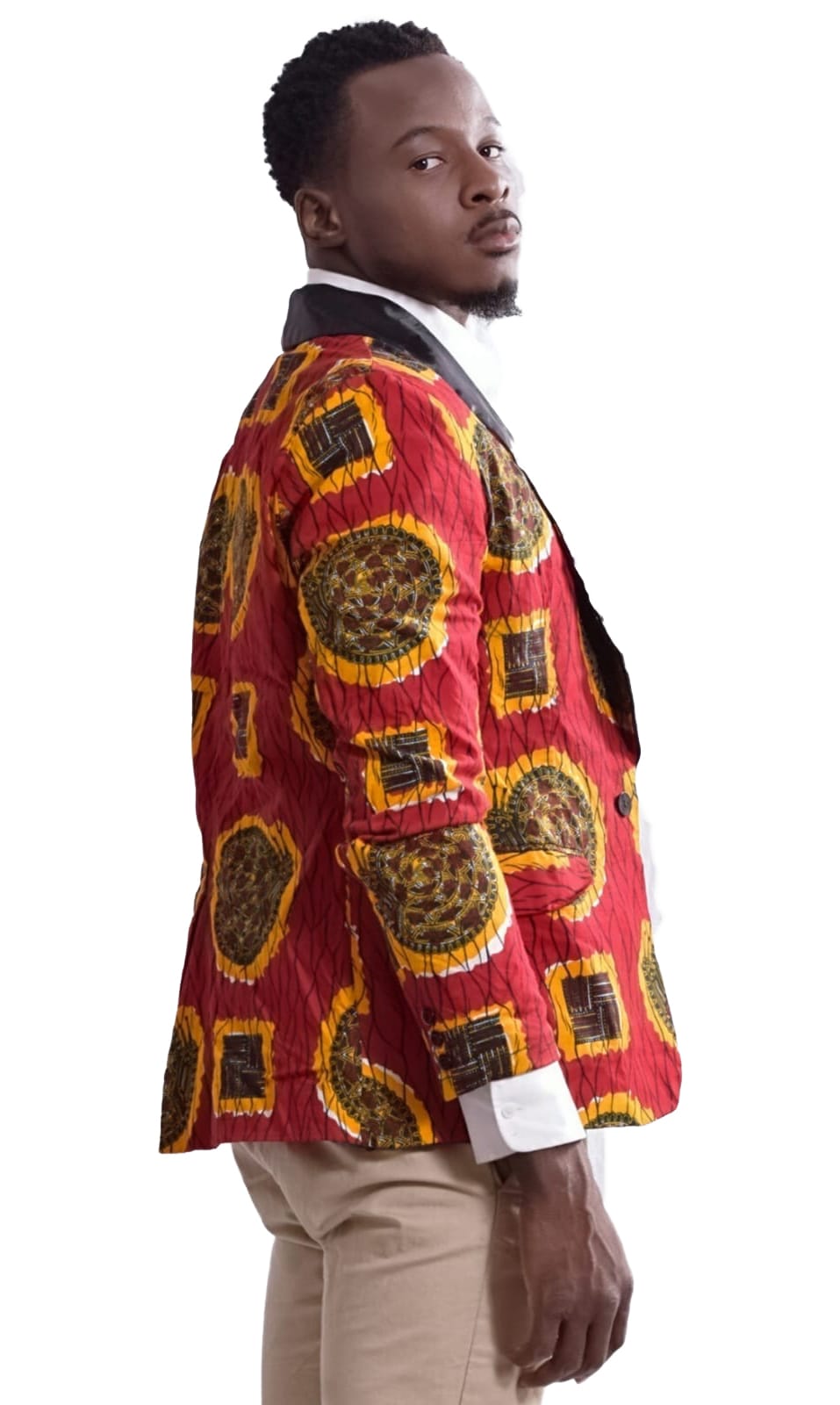 - Long Sleeve Blazer With Black Velvet Lapel.