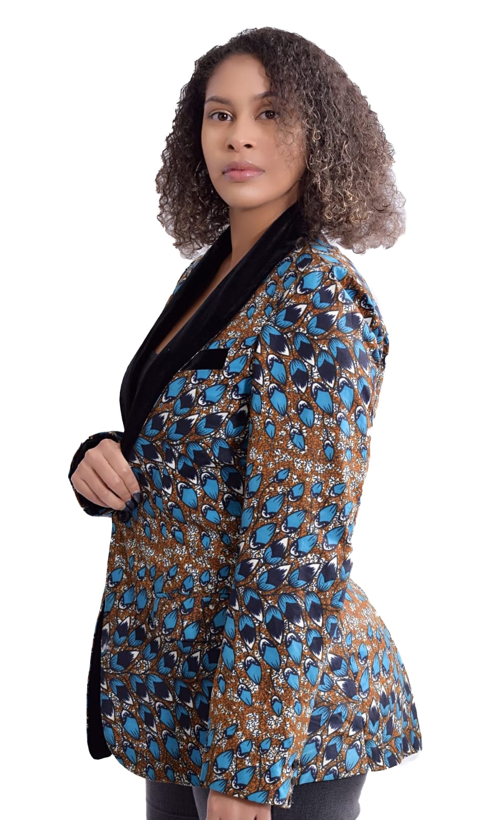- Long Sleeve Blazer With Black Velvet Lapel.