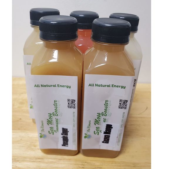 Enjoy the cleansing and detoxifying powers of this incredibly nutritious blend of fresh fruits & sea moss. Choose from mango, piña colada, pineapple & ginger, soursop, pineapple & peach, strawberry-banana, mango-guava flavors.