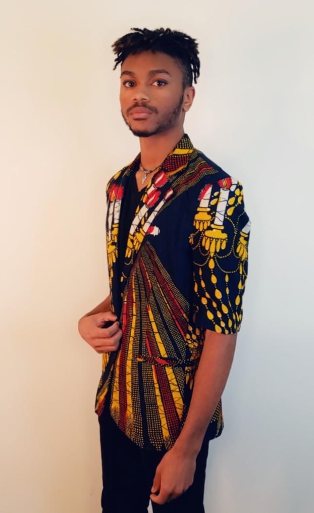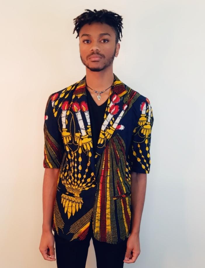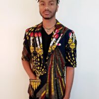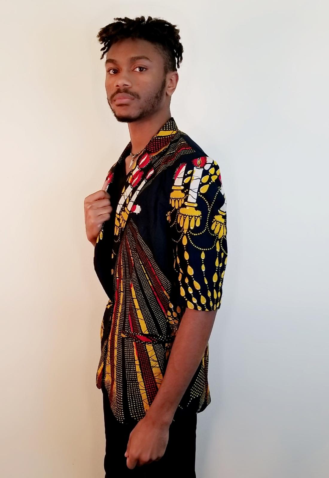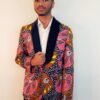 - Short Sleeve Blazer With Black Velvet Lapel.