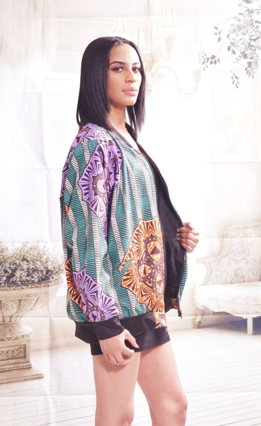 • Flobinna House of Fashion bomber jackets combines the colors and geometrics of 100% cotton materials with a fashionable cut making the fabric the star because Every Flobinna House of Fashion Bomber Jacket comes with longneck, twin side pockets, front zip, and elastic timings.