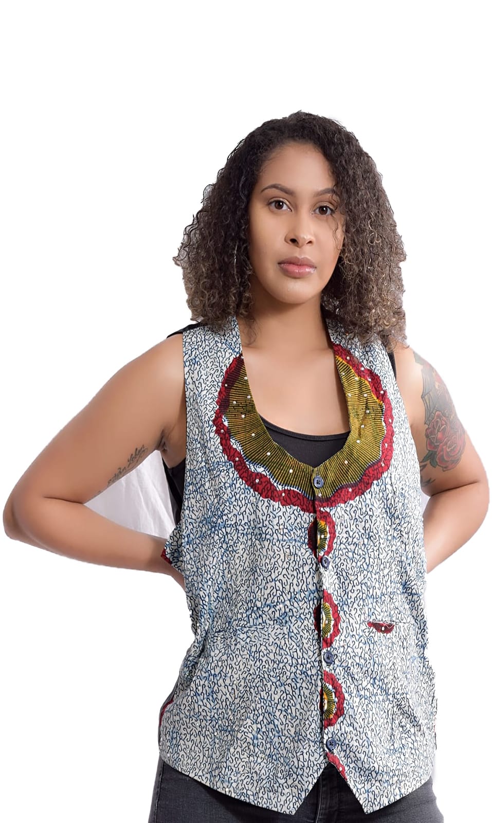- The vest is with buttons in front.