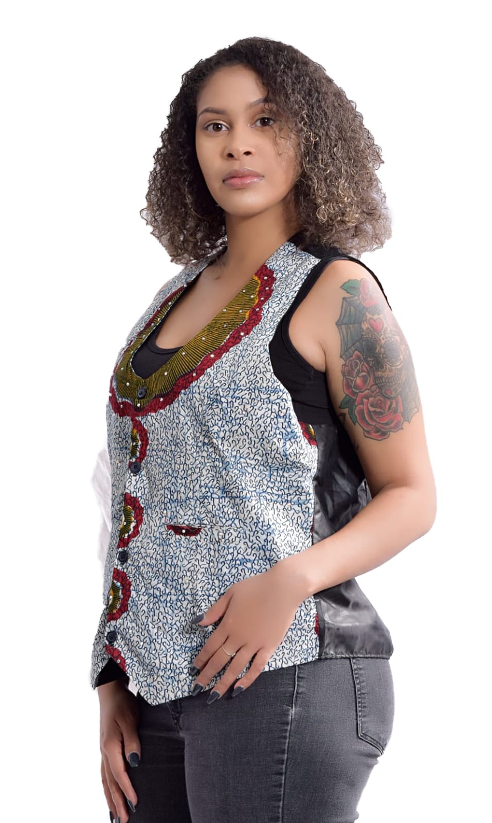 - UNISEX Checkered – Print Floral Vest WITH Rhinestones Embellishments.